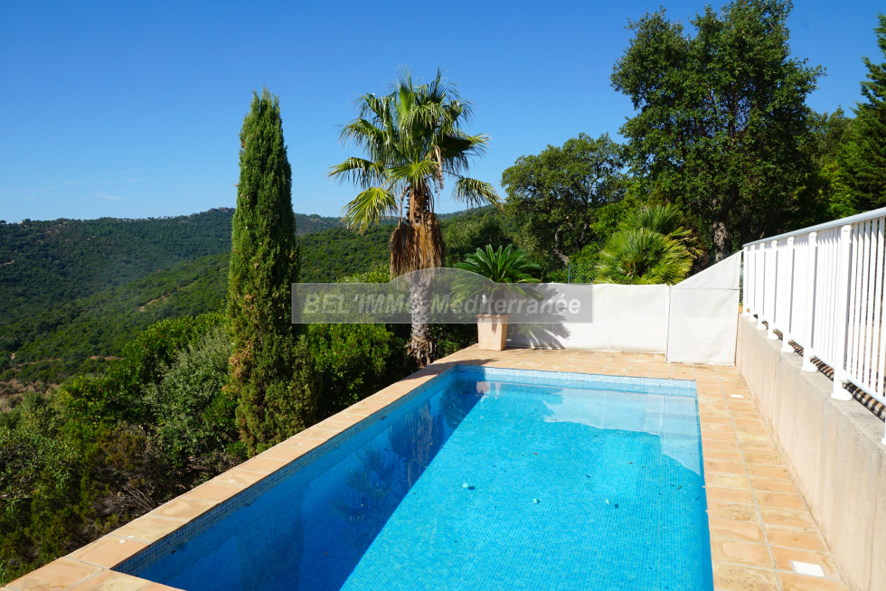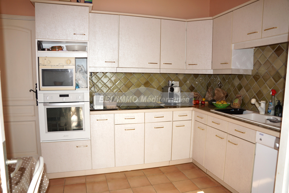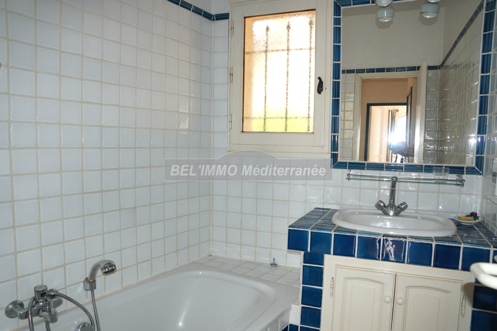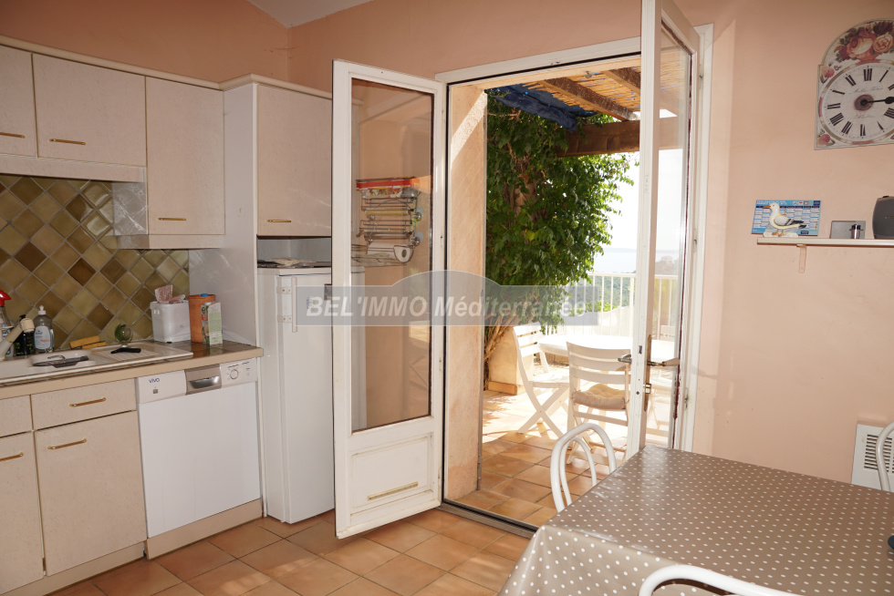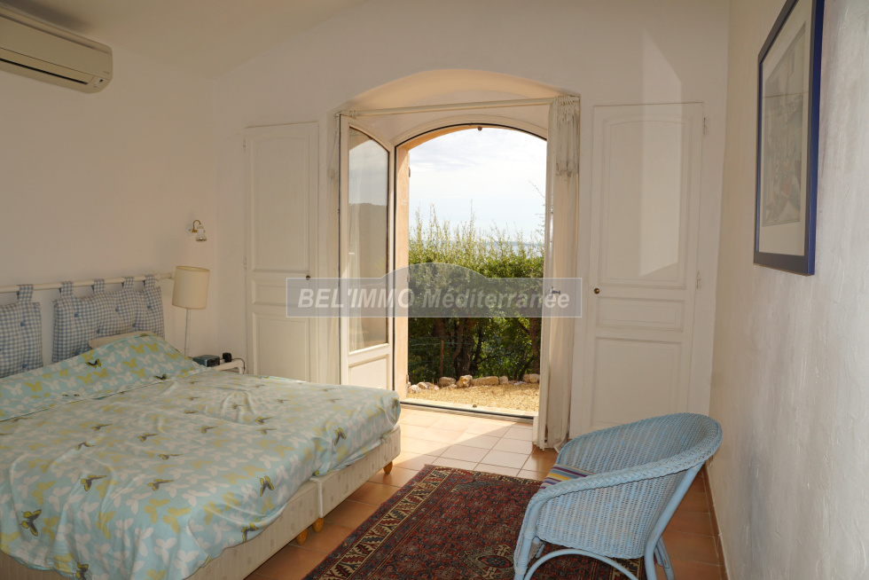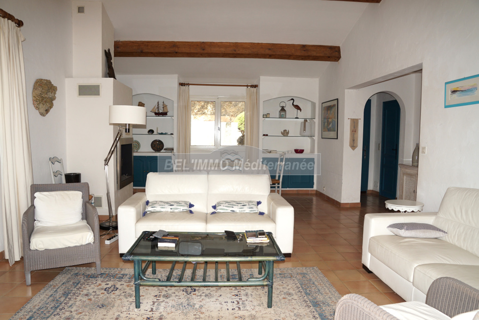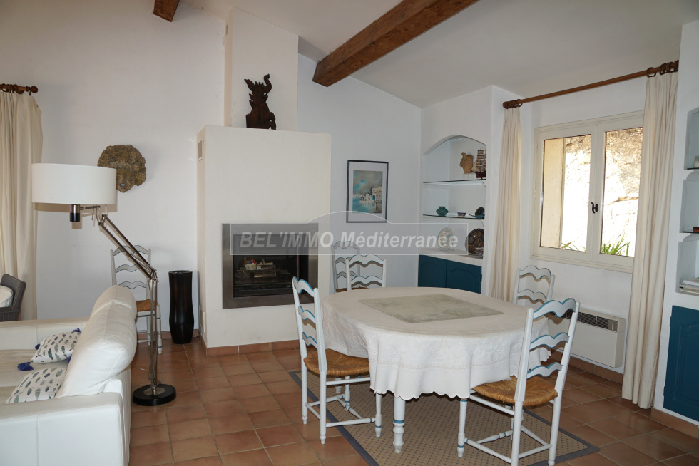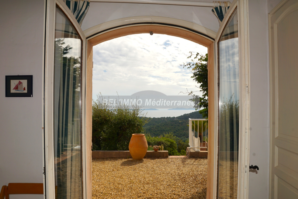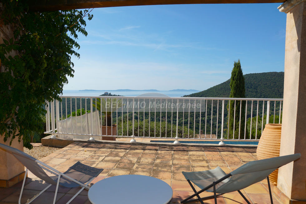 EXCLUSIVITE !! Superbe Vue Mer Panoramique ! Exposition Sud. Charmante Villa provençale de plain pied d'neviron 105 m² habitables comprenant : Entrée, séjour avec cheminée-insert donnant sur une grande terrasse couverte avec VUE MER, cuisine équipée, suite parentale avec penderie et salle d'eau/WC privative, 2 autres chambres avec penderie, salle de bains meublée. Garage en sous-sol et vide sanitaire. Piscine traditionnelle donnant sur la mer. Terrain clos de 720 m². RARE : Vue Mer panoramique et verdoyante (sans aucune construction en vue). A VISITER SANS TARDER