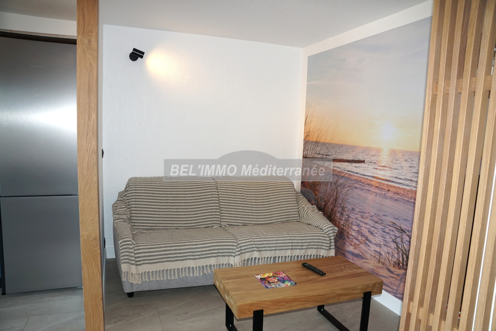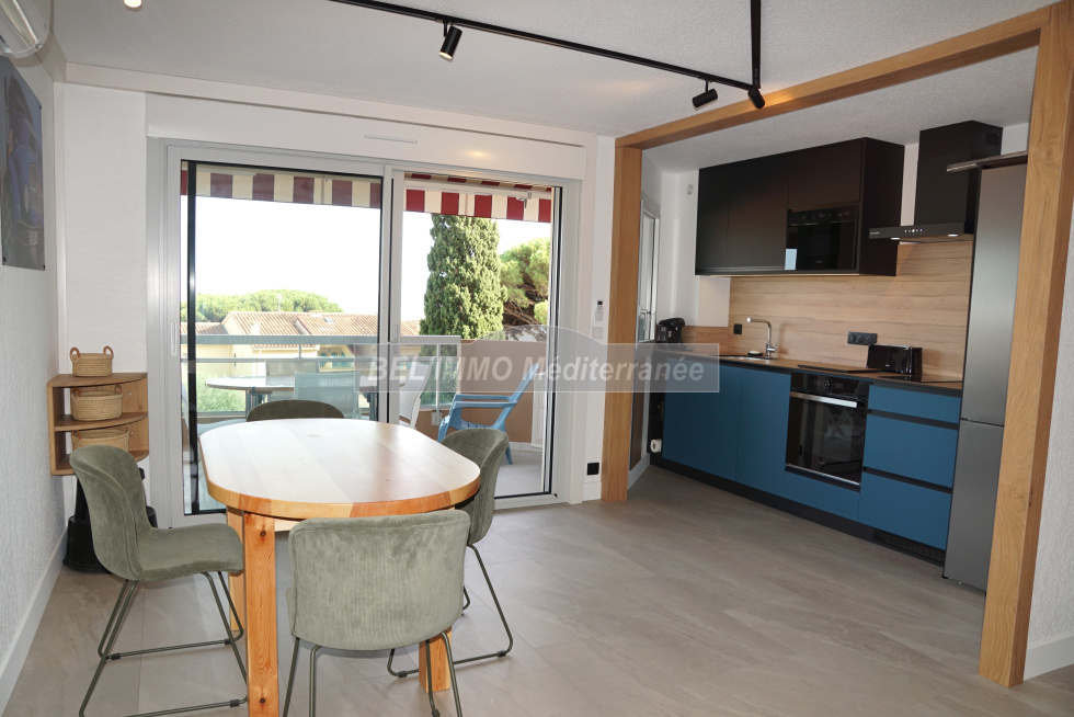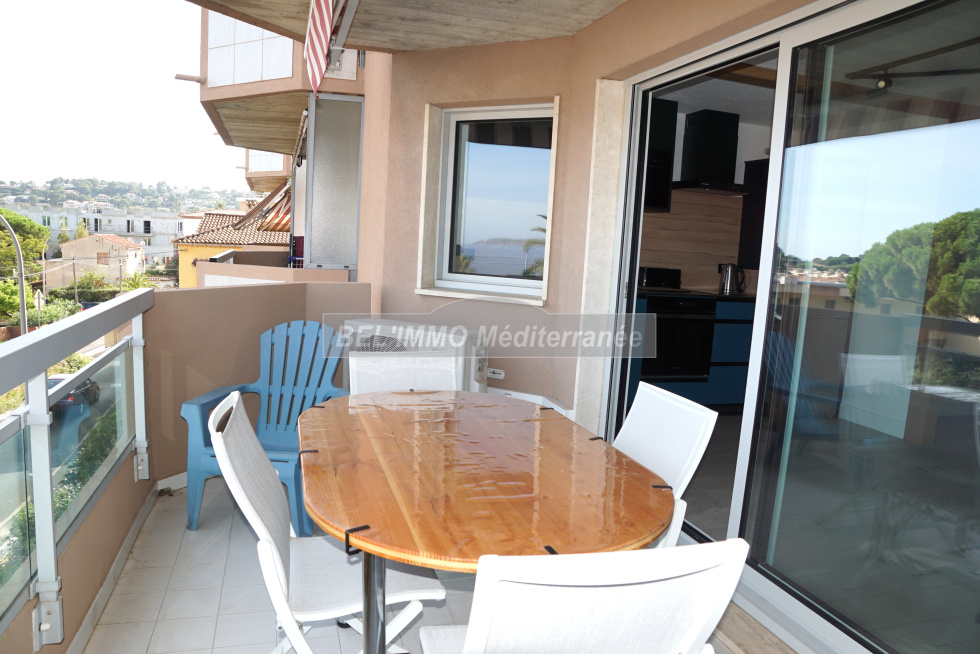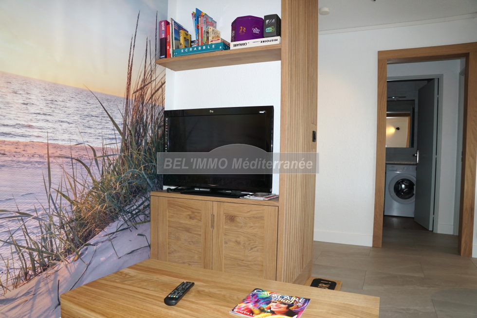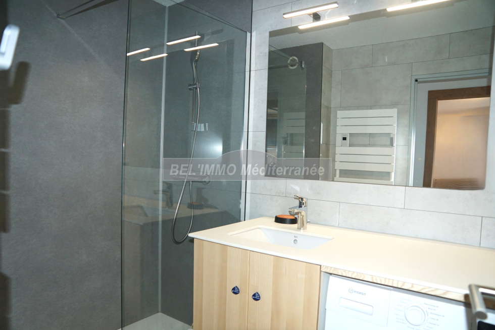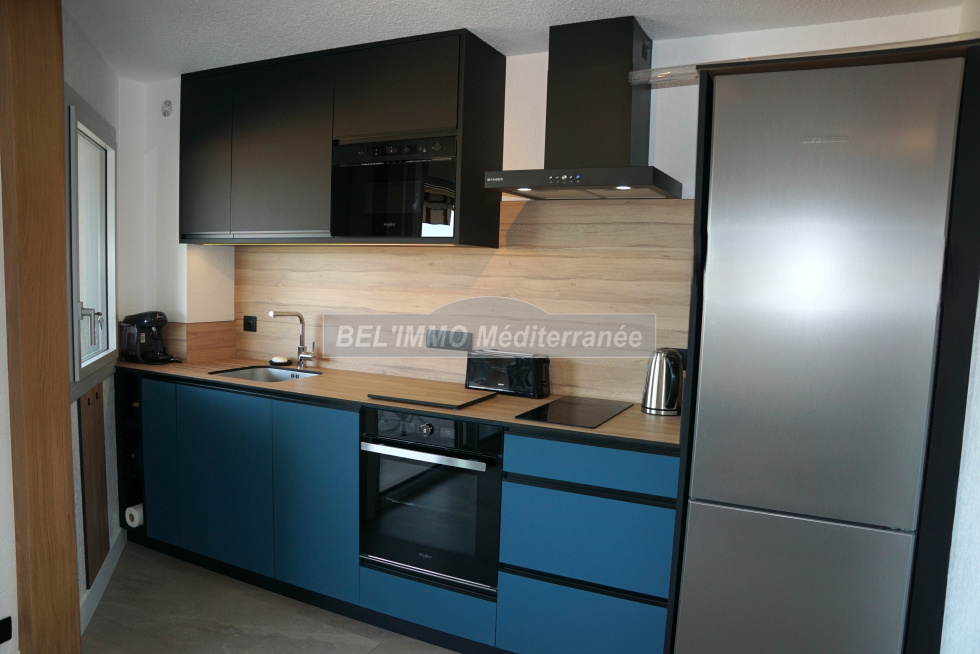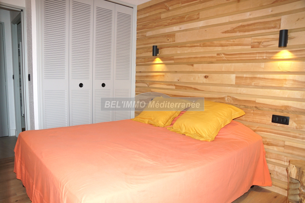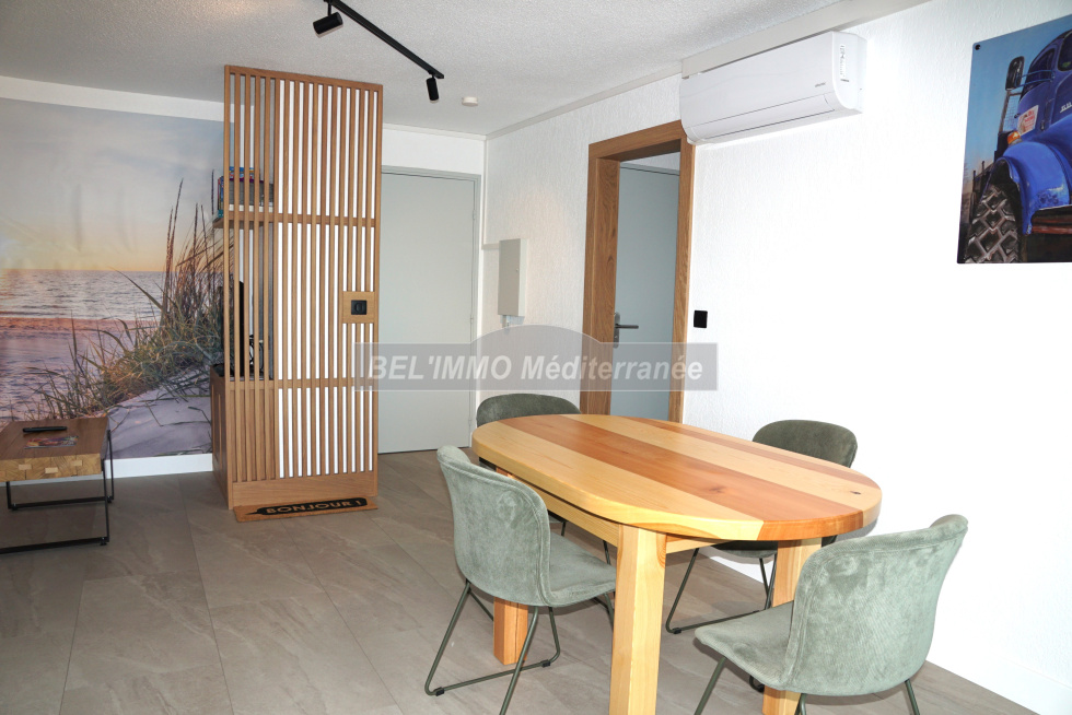 Très bel appartement 2 pièces entièrement rénové de 38 m² hab., Terrasse de 10 m² avec VUE MER et Garage en sous-sol. Cet appartement climatisé comprend : entrée avec penderie, séjour (canapé convertible / couchage double), cuisine ouverte entièrement équipée (lave-vaisselle), chambre avec penderie (lit double largeur 160cm), salle d'eau meublée (lave-linge), WC séparés. Belle terrasse exposée Sud-Est et avec Vue Mer imprenable. Garage en sous-sol. Location de vacances équipée pour 4 personnes maximum. ANIMAUX NON-ADMIS, APPT NON-FUMEUR. (Les tarifs indiqués ne comprennent pas la taxe de séjour ; classement meublé de tourisme : non classé).