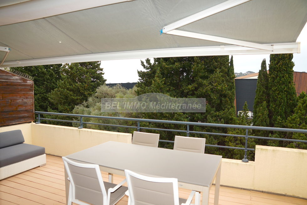 Situé en plein Coeur de Ville, dans résidence récente avec piscine sur le toit. Bel appartement F3 de 58 m² + mezzanine comprenant entrée, séjour avec cuisine ouverte équipée (lave-vaisselle), 2 chambres (lit largeur 160 cm + 2 lits largeur 90 cm), salle d'eau meublée (lave-linge), WC séparés. Terrasse de 16 m² donnant sur le séjour + Terrasse de 5 m² donnant sur les chambres. Garage en sous-sol. Climatisation réversible et ascenseur. Location de vacances équipée pour 4 personnes maximum. NON FUMEUR, ANIMAUX NON ADMIS. (Les tarifs indiqués ne comprennent pas la taxe de séjour ; classement meublé de tourisme : non classé).