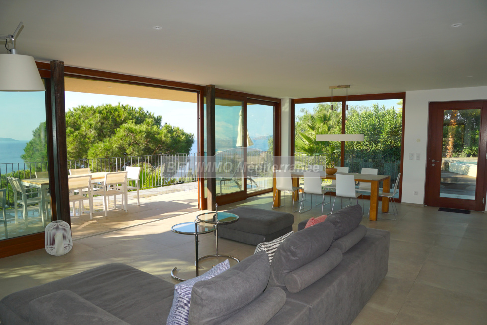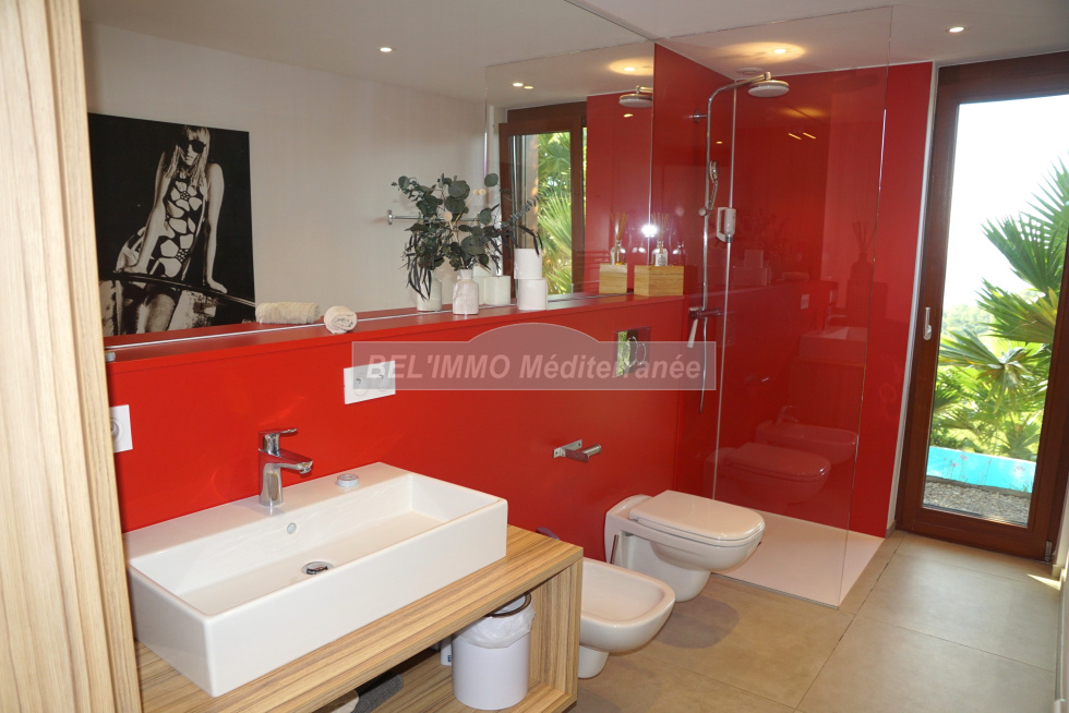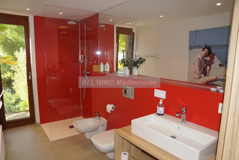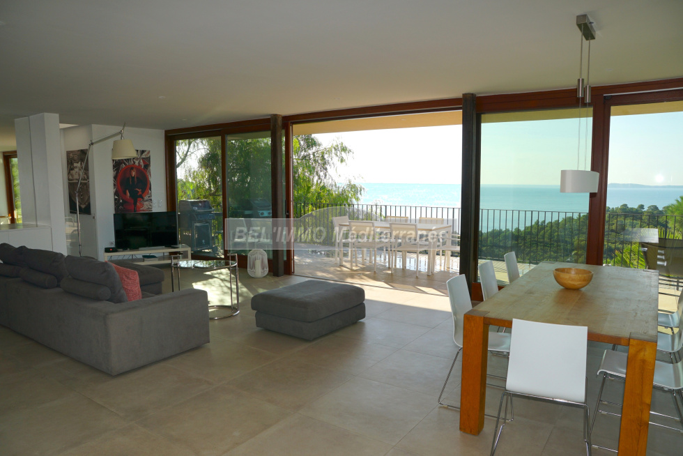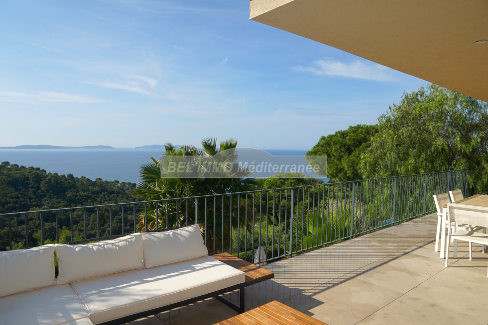 EXCLUSIVITE !! Située au Rayol-Canadel, avec VUE IMPRENABLE sur la mer et l'île du Levant ! Propriété de 300 m² habitables composée de 2 villas avec 2 piscines privatives, et comprenant chacune : très beau séjour avec vue mer, cuisine entièrement équipée, cellier/buanderie, 3 suites (chambre avec salle d'eau privative), cabinet de toilette indépendant, grande terrasse. Possibilité de réunir les 2 villas par les séjours (plan en miroir). Très belle qualité de construction. Etat impeccable ! Terrain clos et paysagé de 1500 m².
