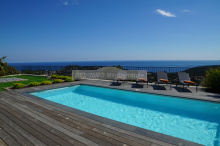 F2 POUR 4 PERSONNES. DOMAINE DE LA BAIE : en Centre-ville, au calme et à 300 m du Port ! Très beau F2 climatisé de 42 m² + terrasse + stationnement en /s-sol. Nouvelle décoration !! DERNIER ETAGE - Résidence avec grande piscine. Situé au dernier étage avec ascenseur, ce très bel appartement comprend : Entrée avec penderie, Séjour (canapé convertible 2 pers.), Cuisine ouverte équipée, Chambre avec penderie (lit double largeur 160 cm), Salle de bains, WC séparés. Sympathique terrasse avec vue dégagée et aperçu mer. Stationnement en sous-sol. Location de vacances équipée pour 4 personnes maximum. ANIMAUX NON ADMIS, APPT NON FUMEURS. Tarifs spéciaux hors saison et longue durée. (Les tarifs indiqués ne comprennent pas la taxe de séjour ; classement meublé de tourisme : 3 étoiles)